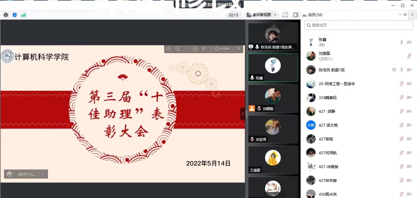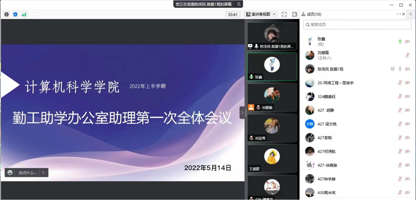 5月14日晚,BB贝博艾弗森官方网站通过腾讯会议线上召开了勤工助学办公室助理大会暨第三届“十佳助理”表彰大会。学院资助辅导员左温慧、张鑫及60余名勤工助学办公室助理参加了大会。